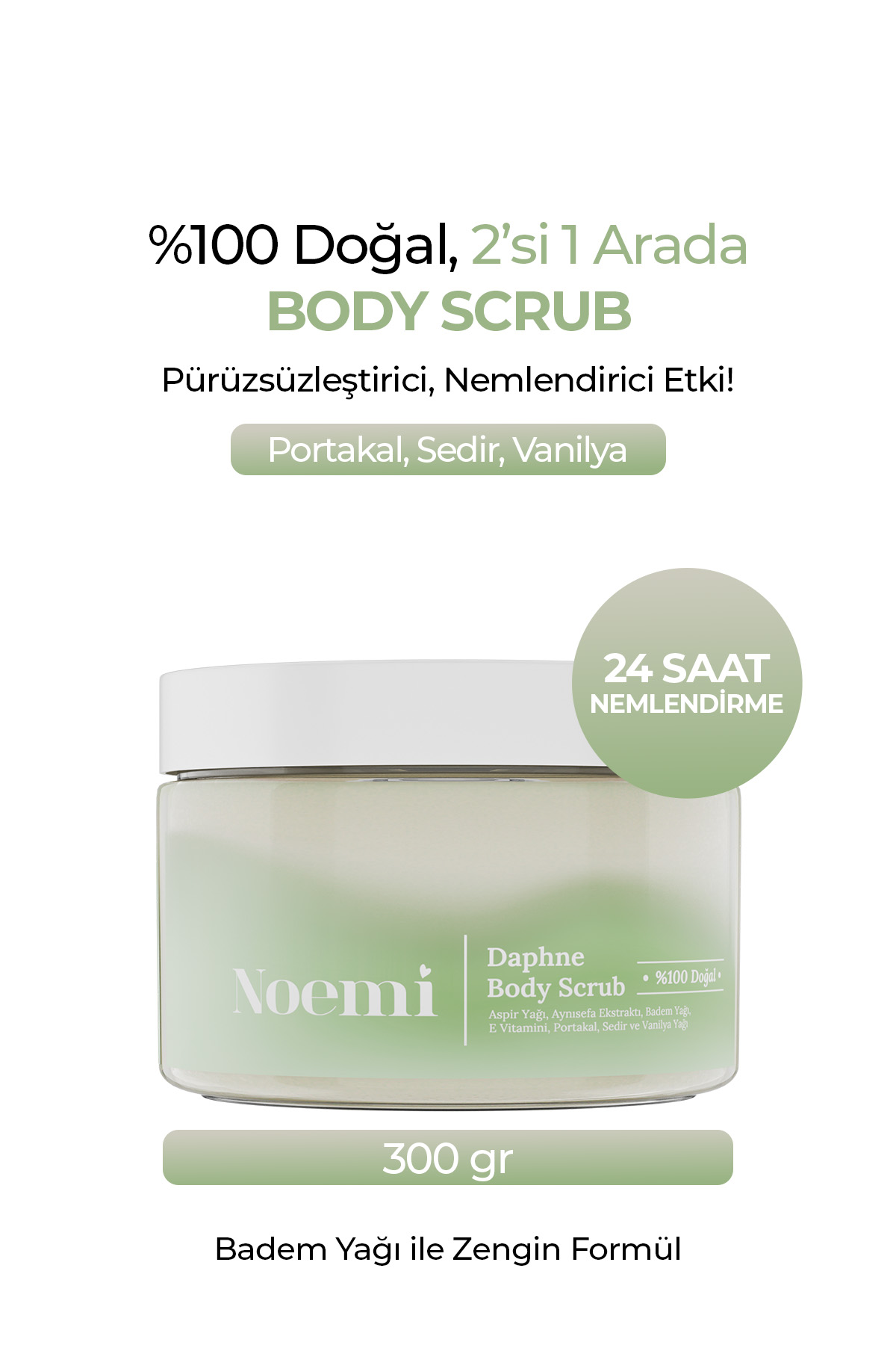 Noemi %100 Doğal Body Scrub - Arındırıcı, Yoğun Nemlendirici El Ve Vücut Peelingi – Daphne 330 gr