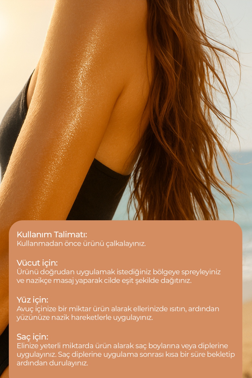 Kullanım Şekli: Temiz ve kuru cilde veya saç uçlarına ince bir tabaka halinde nazikçe uygulanır.