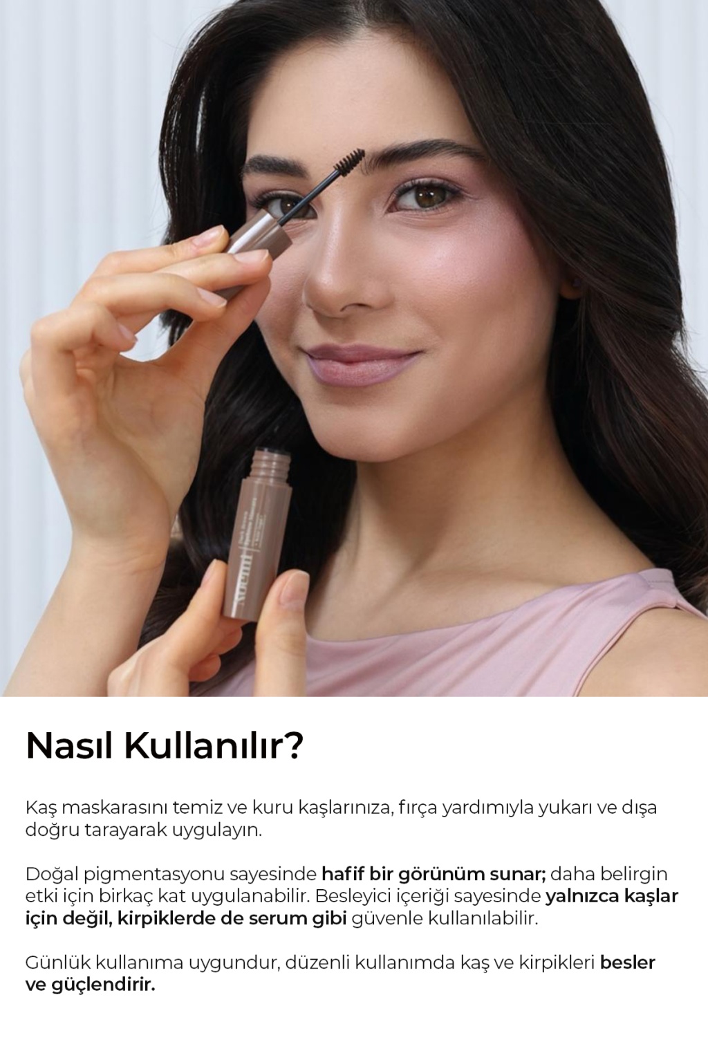 Sabitler, Besler, Renk Verir! Kaş ve kirpiklerinizi sabitleyerek gün boyu kusursuz bir görünüm sağlayan bu maskara, aynı zamanda besleyici formülüyle güçlenmelerine yardımcı olur. İçeriğindeki