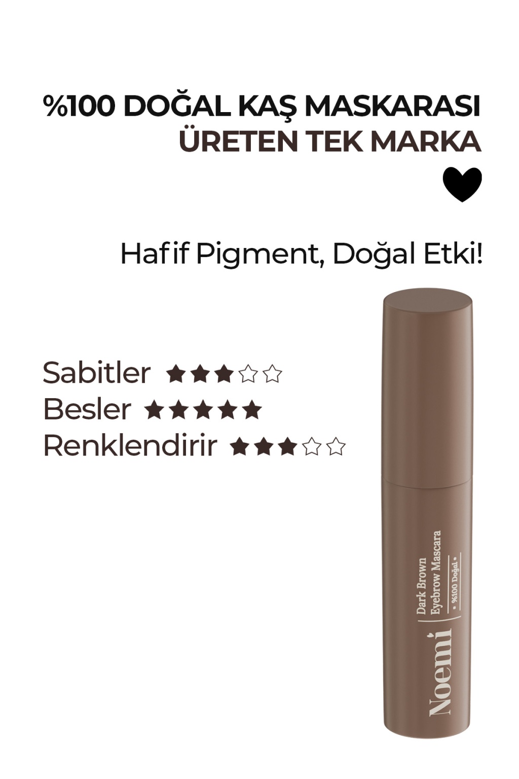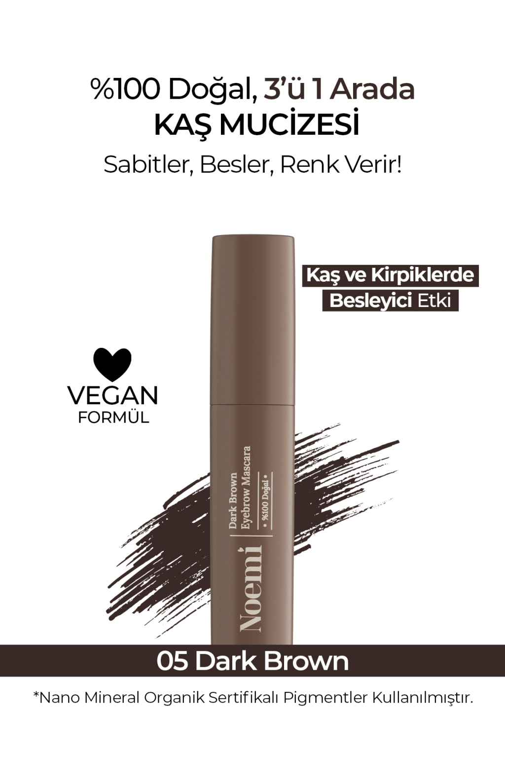 Noemi %100 Doğal, 3’ü 1 AradaKaş Maskarası / Eyebrow Mascara - 05 Dark Brown / Koyu Kahve