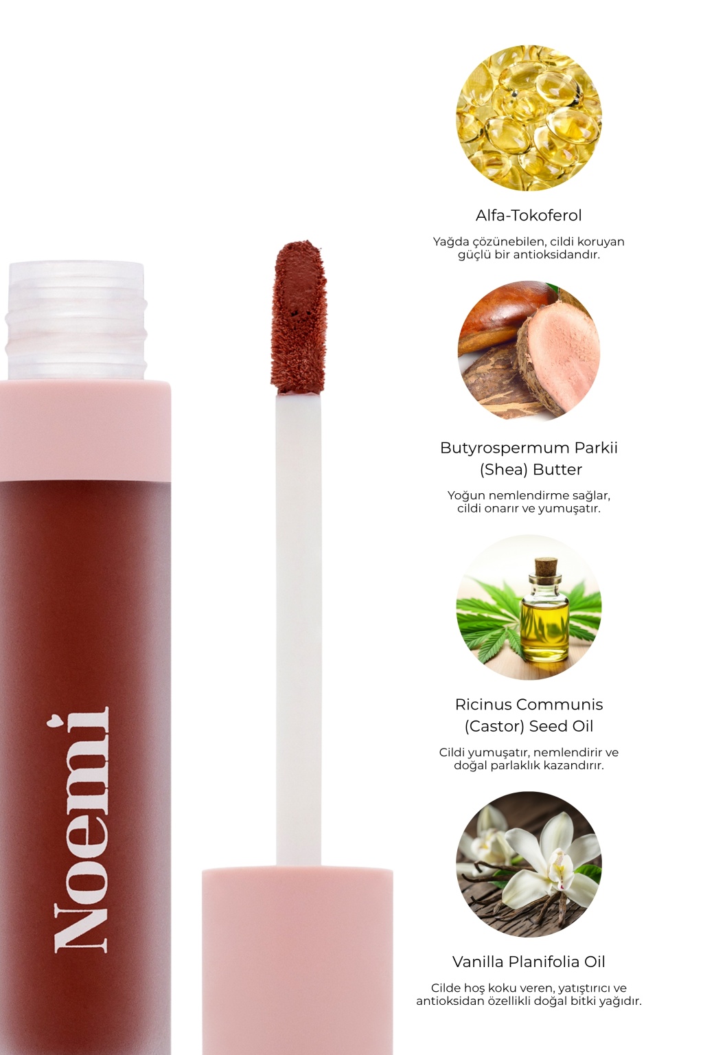 İçeriğinde bulunan organik argan yağı, Vitamin E değerli yağ kombinasyonları ile dudakları ve cildi nemlendirerek, doğal bir görünüm sağlar.